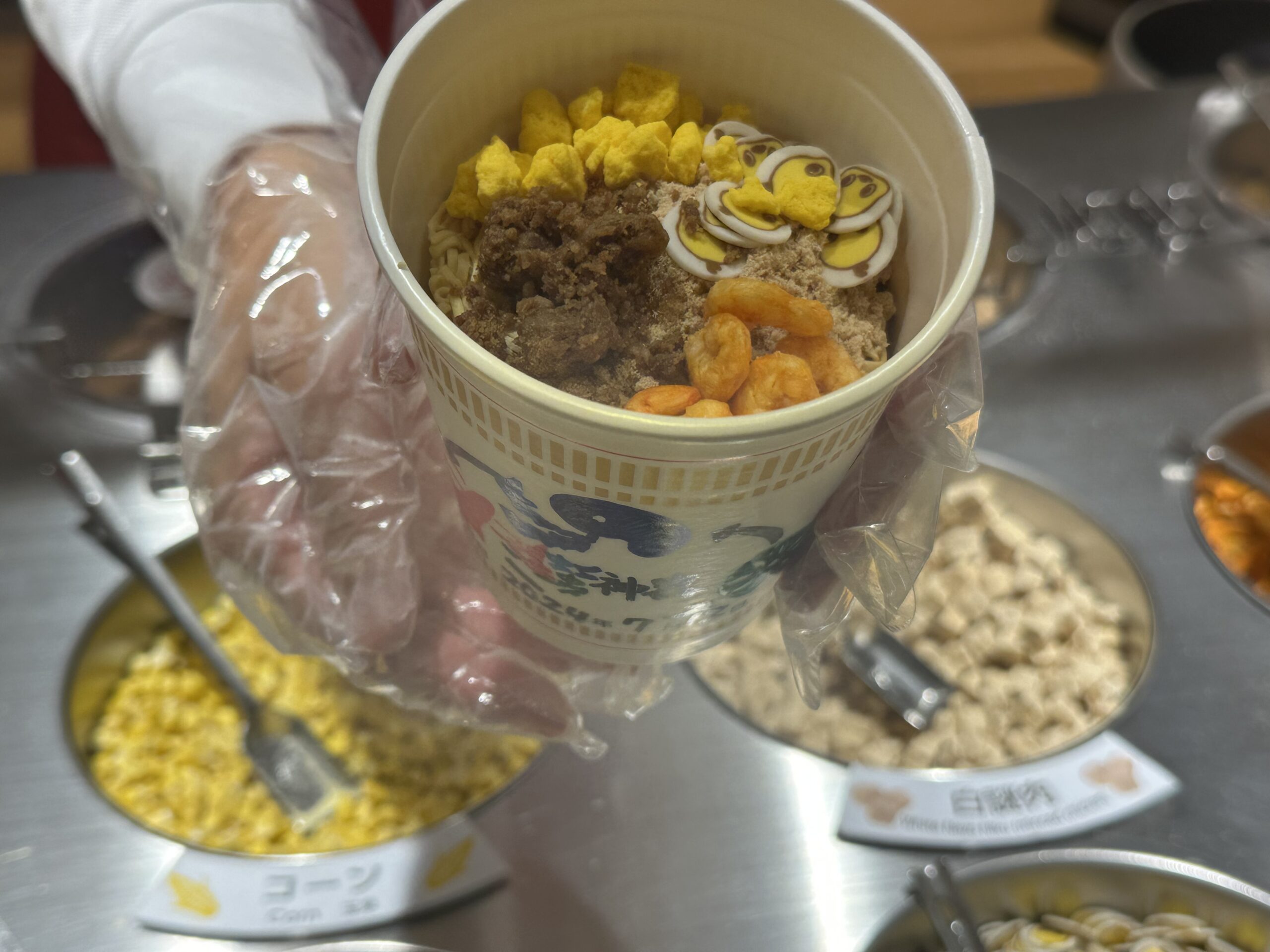 なんといっても目玉は、世界で一つだけのオリジナルのカップヌードル、チキンラーメンを作れること。