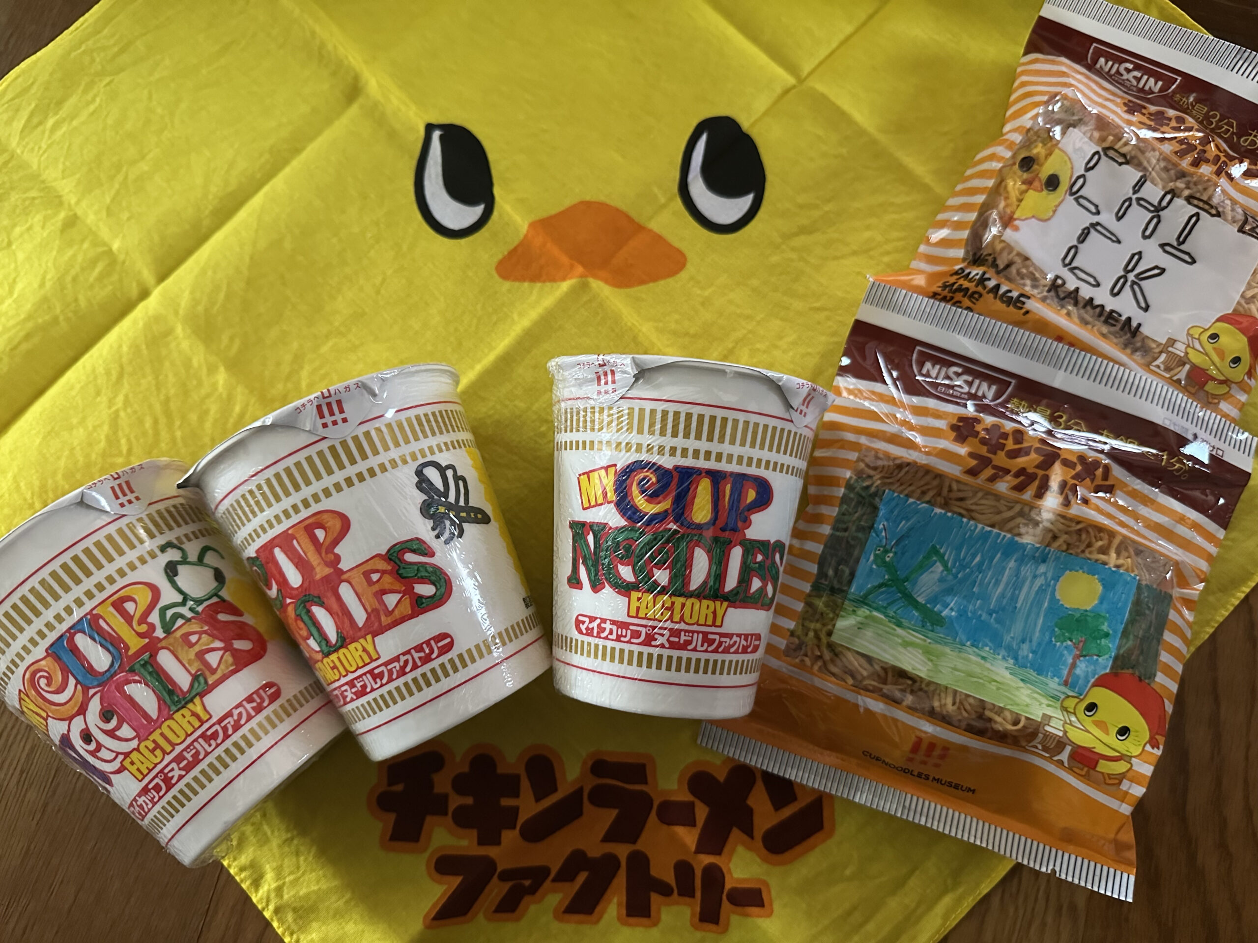 子ども向けの雑誌でひよこちゃんナルトを見てからずっと行きたがっていたので、マイカップヌードルとマイチキンラーメンを作ることができて、子どもたちは大満足でした。