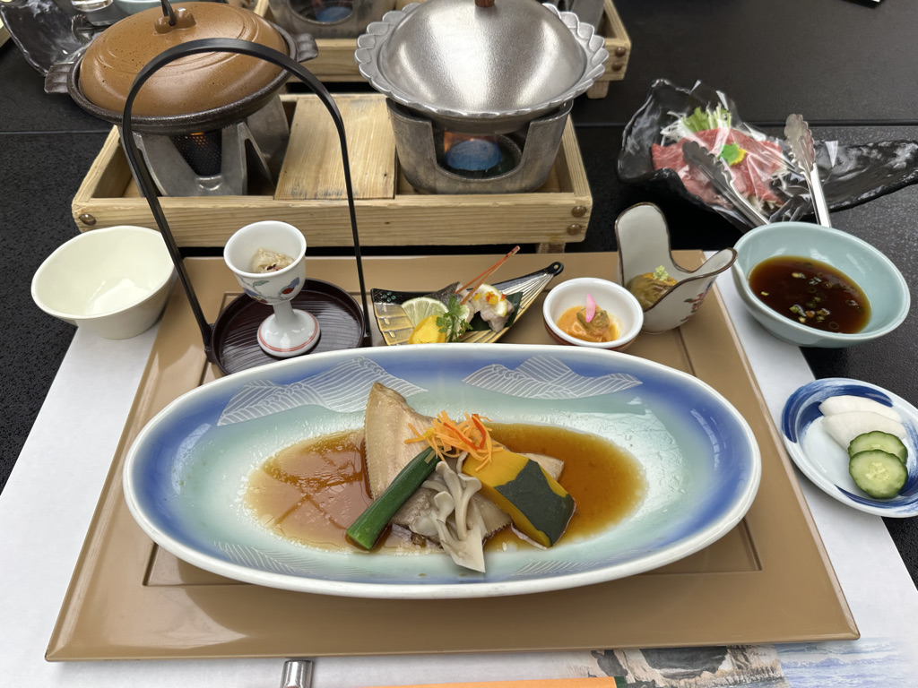 岬プランではお刺身がついていますが、私はあいにく生物が食べられないため、お刺身の代わりにお魚の煮付けをいただきました。